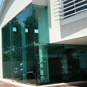 Muros cortinas con pegado de silicona estructural.
