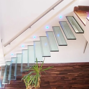 Pisos de vidrio, para escaleras y usos decorativos.
